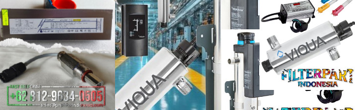 Sistem UV water treatment terdiri dari beberapa komponen utama, termasuk lampu UV dan controller seperti Viqua BA-ICE-S Ballast yang berfungsi mengatur kinerja sistem secara keseluruhan.